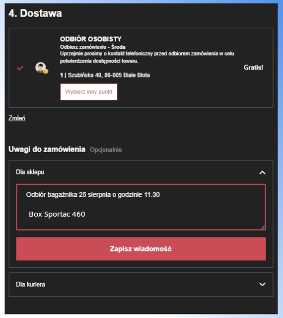 Dokonując rezerwacji w uwagach określ datę odbioru i zwrotu bagażnika